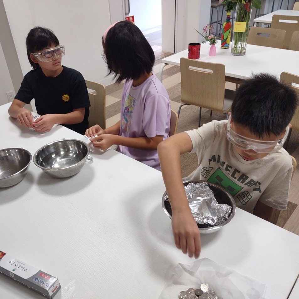 Grade 5 scientists learned that distillation and evaporation separate solids and liquids. We separated a saltwater solution using fire to evaporate the water from the salt. Additionally, we're learning about buoyancy, competing to see who could fit the most 100 yen coins on their foil boat. Our record was fifty-five 100 yen coins!