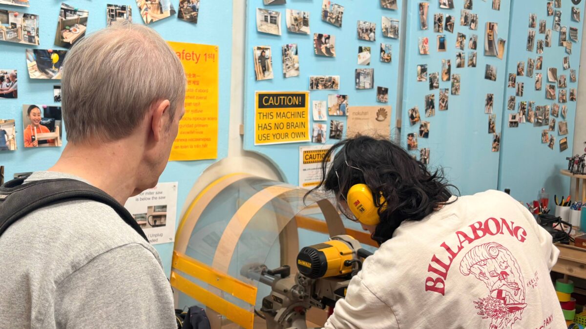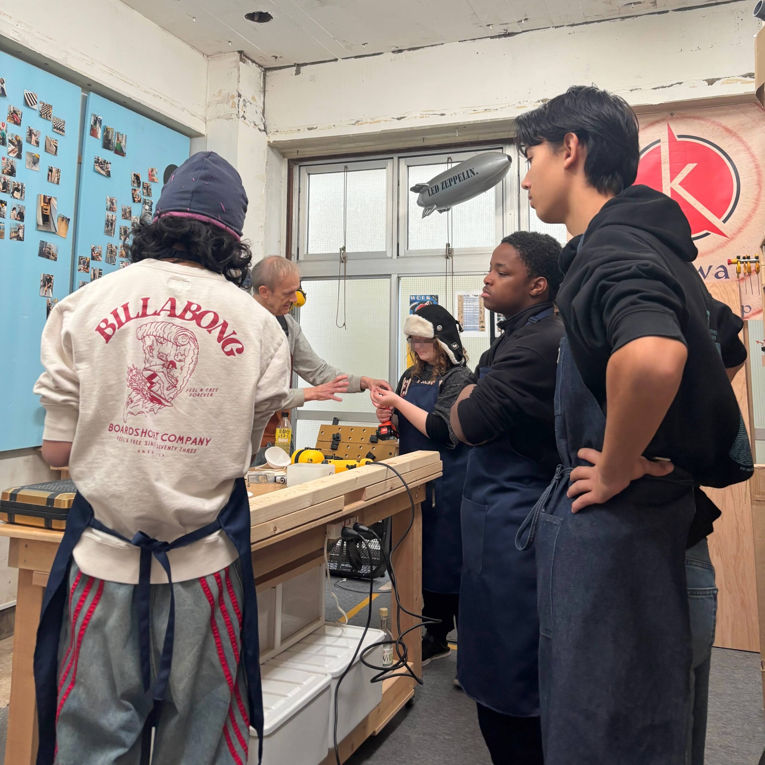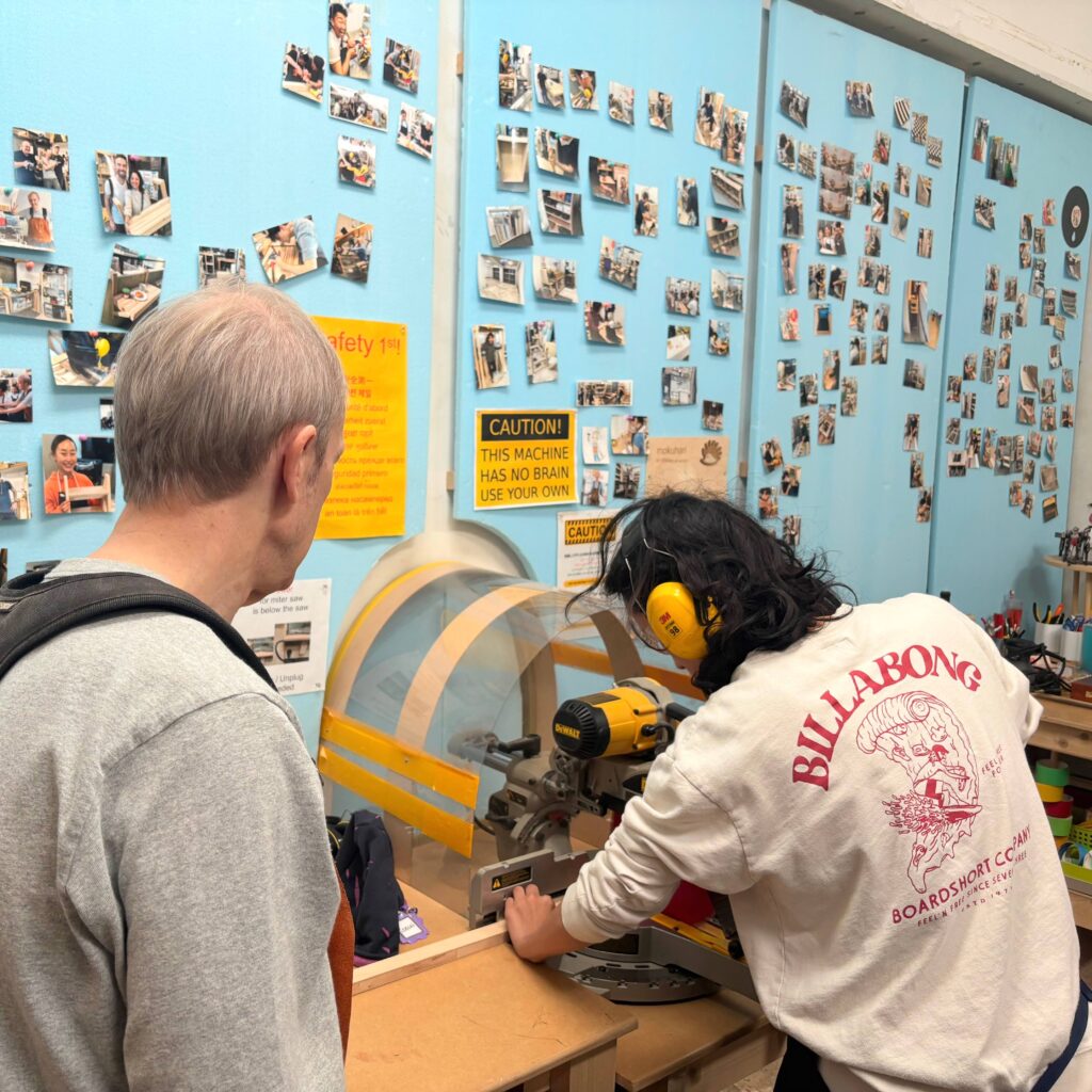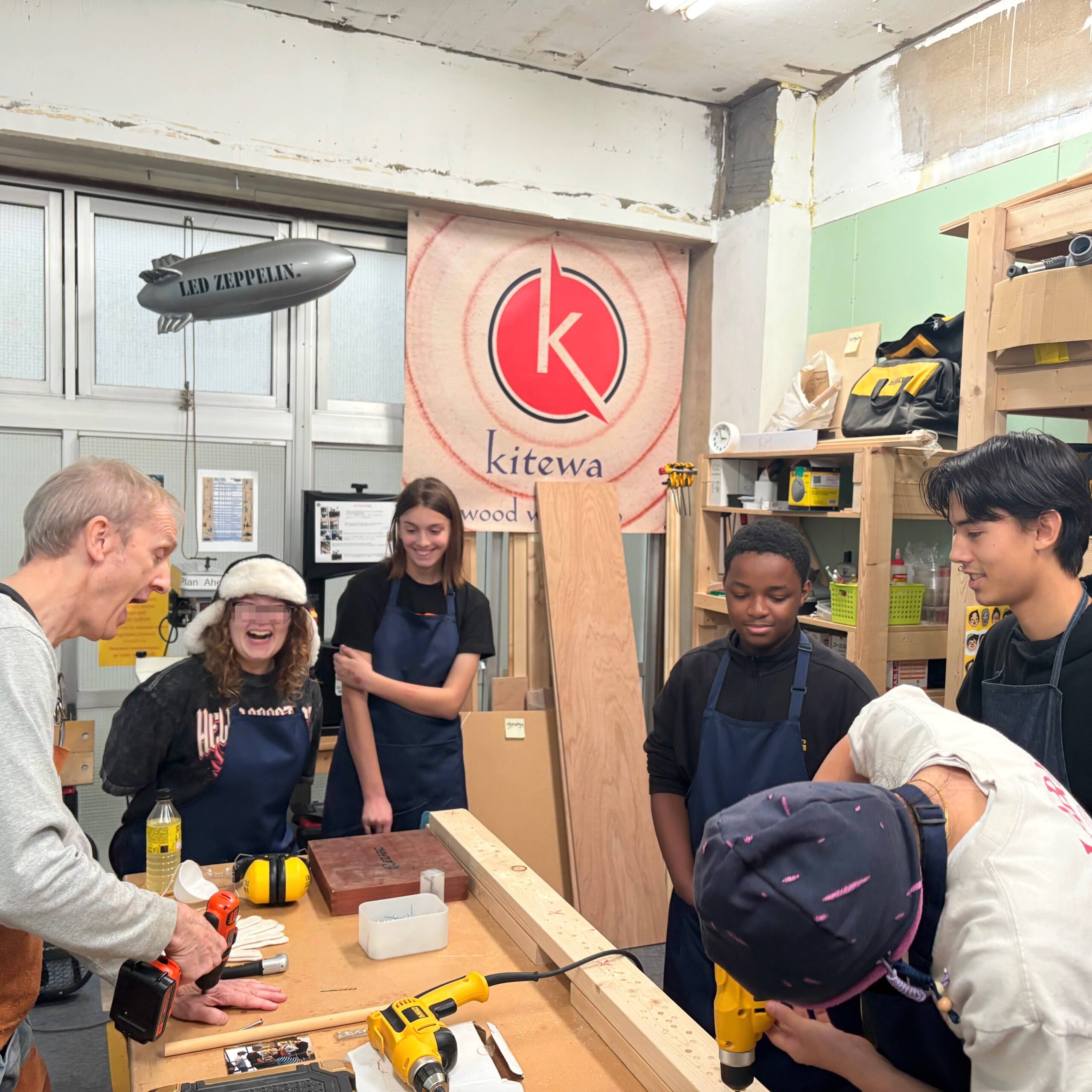 On Thursday, Oct 13th, a group of five students visited the Kitewa Wood Workshop, and learned about different tools used in woodworking, as well as experienced real practice with the tools. This experience leads to opportunities to visit the shop again in the future and build projects of one's own interest and imagination. The studio is located in a large space that combines with the Mokuhari Creative Space where students can also learn other creative work skills, like 3D printing and laser printing. It was a fun and productive afternoon!
